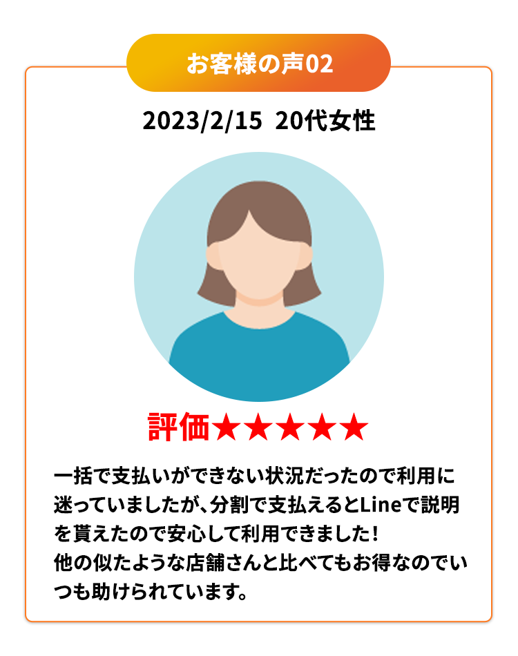 | 営業時間 | 9:00~20:00 ※Lineの受付は、年中無休で24時間365日行っております。 |